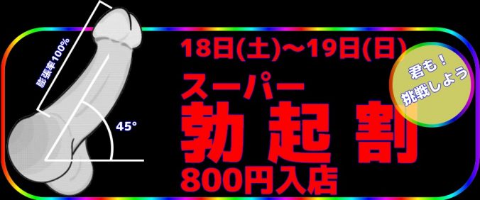 太さ長さ大きさは関係なく勃起率100%で割引適用です