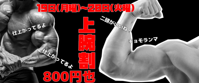 入店受付時に鍛えた上腕をご提示で800円入店!