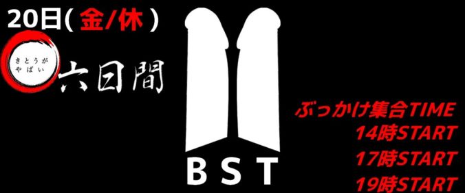 20日(金/休)ぶっかけand集合TIME 2020-03-16 / admin 昼12時オープン 手隠しDAY ぶっかけPLAY(かけられ役)希望の方は白い蛍光ライトを装着 蛍光ライトは店内の取りやすい場所に設置しているので、ぶっかけられたくなったら自由に装着! 狙ってるイケメンのタイミングに合わせてぶっかけ待機! ぶっかけ集合TIME(BST) 1日3回、約30分間ハッテンエリア手前はライトUP!奥に進むと暗闇の深淵!! 🔥14時START 🔥17時START 🔥19時START (ノリが良ければ21時START終了未定!) 暗闇エリアではエロハプニングに厳重注意 event, news Previous post 21日(土曜)ローションガーゼ Next post 19日(木曜)真夜中の勃起測定会 深夜24時スタート