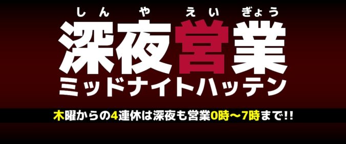 23日からの4連休は深夜も営業 2020-07-21 / admin 連休は深夜も営業!!昼12時から朝7時までOPEN 23日(木曜)朝7時まで営業 ┣受付時に勃起チンポご提示で800円入店 ┗「スーパー勃起割」 24日(金曜)朝7時まで営業 ┣2色の蛍光ライトでポジションアピール ┗特典もらえる「WHAT COLOR?」 25日(土曜)朝7時まで営業 ┣バニラプレイ好きは白蛍光ライト ┗「俺バニラ」 26日(日曜)朝7時まで営業 深夜営業時間帯は手隠し/ミニタオル/アンダーウェア/上半身着から好きなスタイルを選べるSTYLE-3プラスワンにかわります 毎日20:30~07:00までは遅割で1,000円ハッテンTIME 店内マスク着用OK event, news Previous post 18日~19日(土日)ブラックマスクor白マスク無料進呈 Next post 24日(金/休)「WHAT COLOR?」